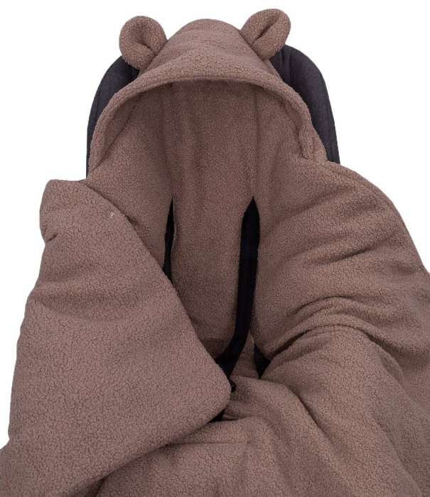 Oteplený fusák, deka s kapucí do autosedačky Beránek, Baby Nellys - hnědý