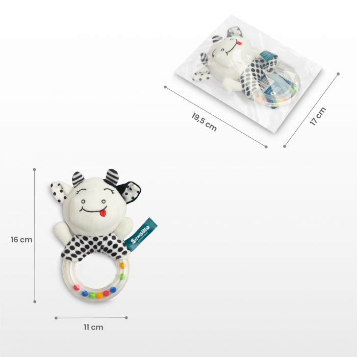 Senzorické chrastítko v kontrastních odstínech černé a bílé bylo vytvořeno s ohledem na stimulaci zraku a rozvoj smyslového vnímání vašeho miminka.