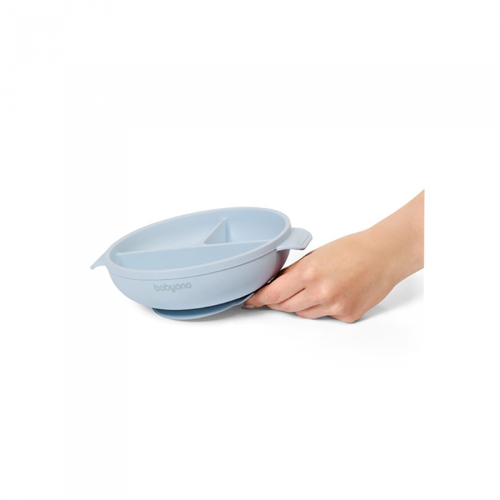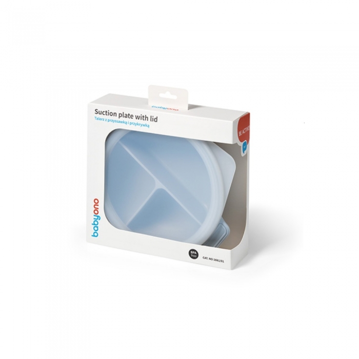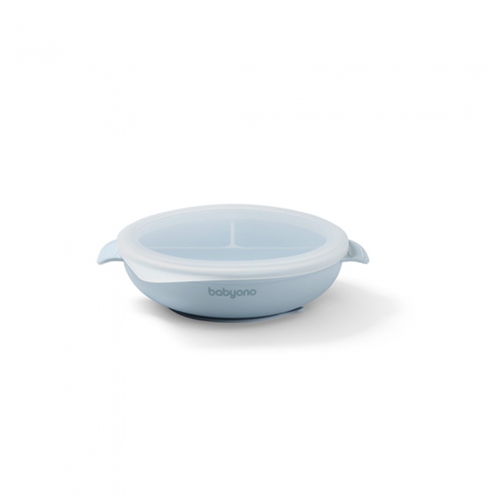 Dělený talíř s přísavkou a víčkem BabyOno – ideální pro zavádění příkrmů a metodu BLW.