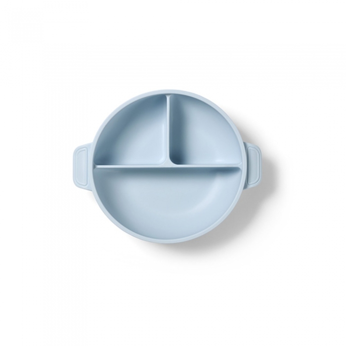 Tříkomorový silikonový talíř s přísavkou a víčkem je skvělým pomocníkem při zavádění pevné stravy, zejména při používání metody BLW (Baby Led Weaning).