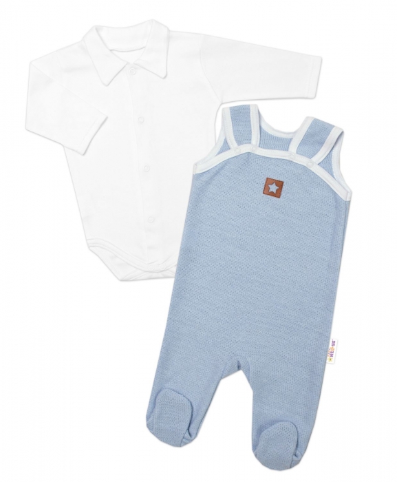 2-dílná soupravička Star, body dl. rukáv + pletené dupačky, modré, vel. 62