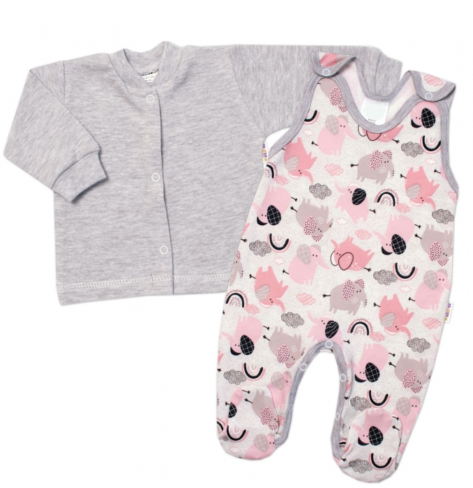 Baby Nellys 2-dílná sada, bavlněné dupačky s košilkou Sloníci, šedá, vel. 62