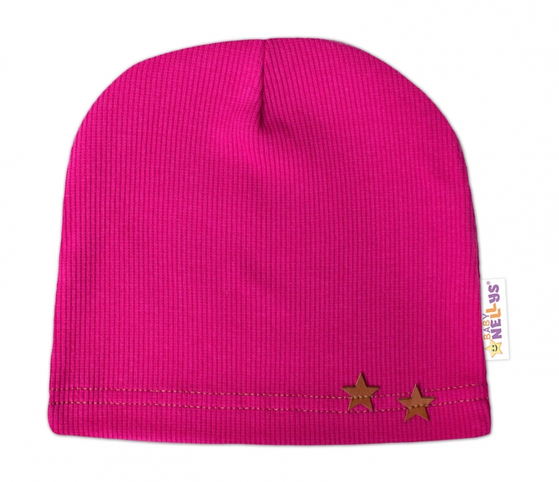 Baby Nellys Žebrovaná čepice Hvězdičky - malinová