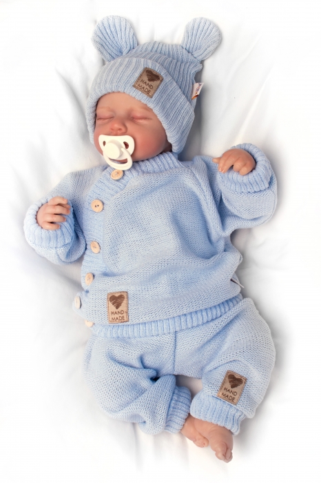 Dětský pletený svetřík s knoflíčky, zap. bokem, Hand Made Baby Nellys, modrý, vel. 68/74
