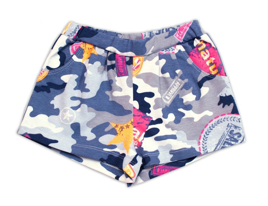 Dívčí kraťasy s kapsami, bavlna Army, Mrofi, modré, vel. 80