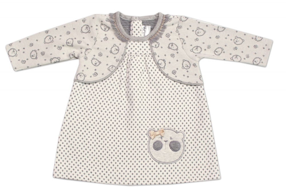 Kojenecké šatičky s bolerkem Lovely Teddy, Minetti - ecru/šedé
