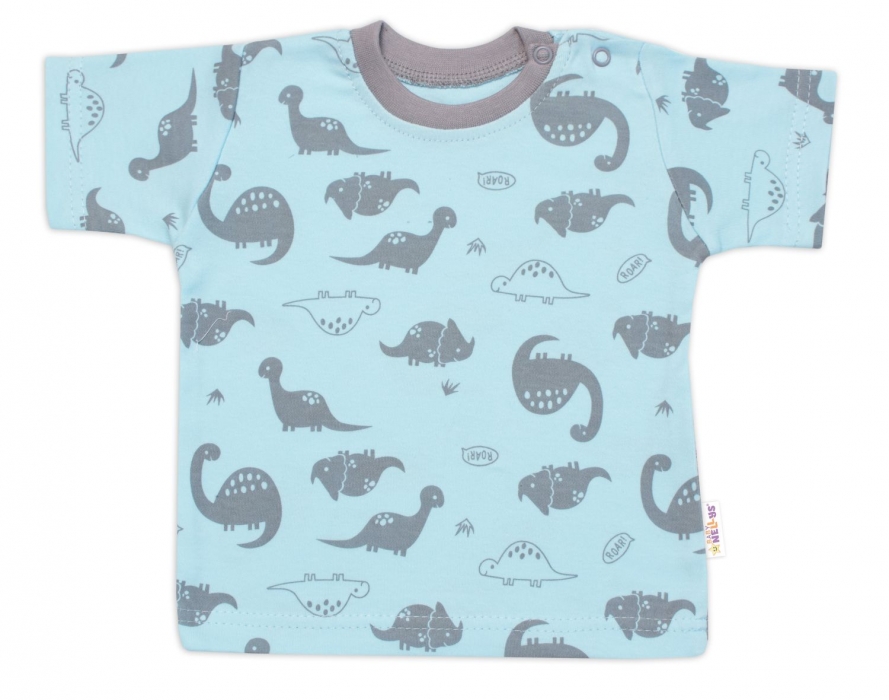 Tričko, krátký rukáv + kraťásky, 2D, Baby Nellys, Dino, bavlna, modrá/šedá, vel. 92