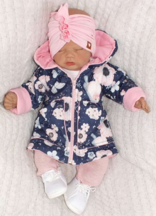 Z&Z Přechodová prošívaná bundička s kapucí - Květy, granát, vel. 80