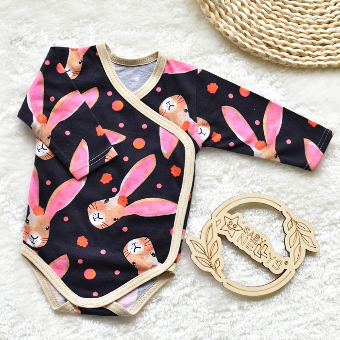 Zavinovací kojenecké body dl. rukáv, bavlna, Zajíček Baby Nellys, granát