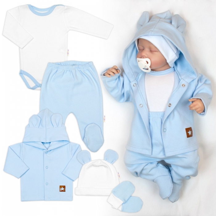 5dílná žebrovaná sada pro miminko je dokonalým doplňkem pro vaše nejmenší.
