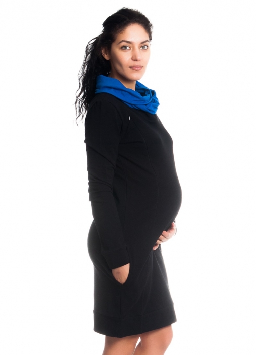 Be MaaMaa Teplákové těhotenské/kojící šaty Eline, dlouhý rukáv - černé, vel. XL