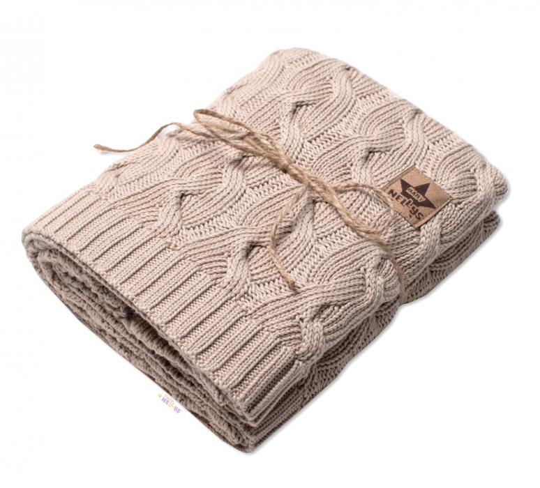 Bambusová dětská pletená deka Baby Nellys, vzor pletený cop, 80 x100 cm, bežová