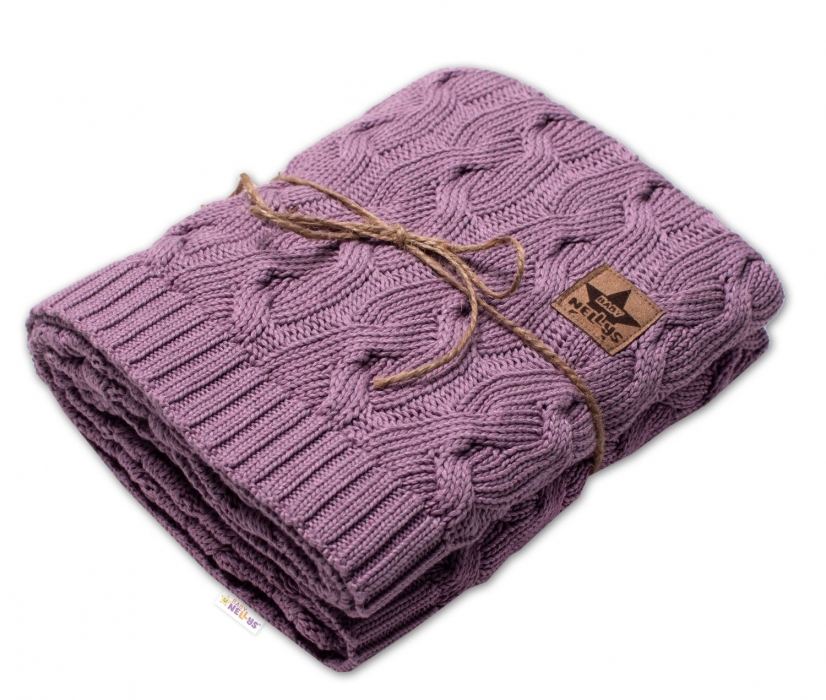 Bambusová dětská pletená deka Baby Nellys, vzor pletený cop, 80 x100 cm, levandulová