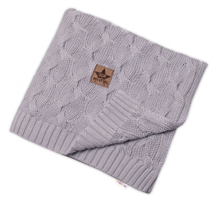 Bambusová dětská pletená deka Baby Nellys, vzor pletený cop, 80 x100 cm, šedá