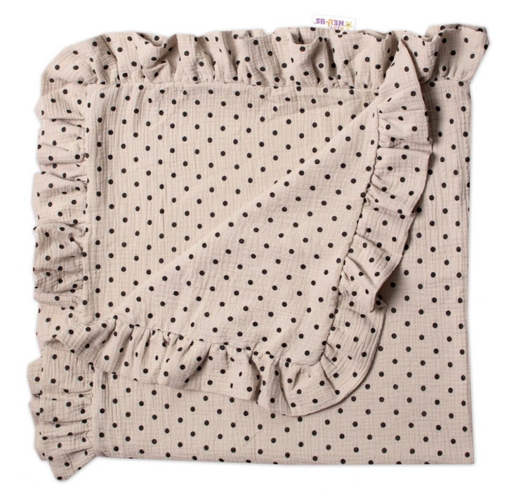 Luxusní dvouvrstvá mušelínová deka s volánky, Puntík, Baby Nellys 120 x 120 cm,cappuccino