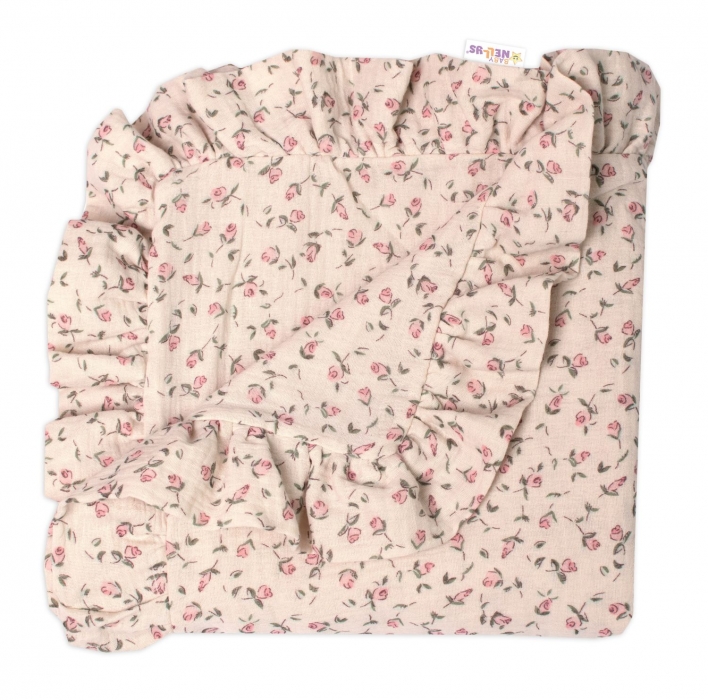 Luxusní dvouvrstvá mušelínová deka s volánky, Růžička, Baby Nellys 120 x 120 cm, ecru