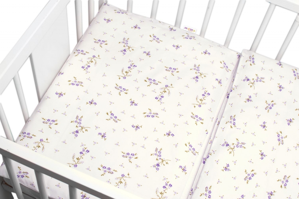 Povlečení do postýlky, 2D sada bavlna - Levandule, Baby Nellys, bílá/fialová, 135x100 cm