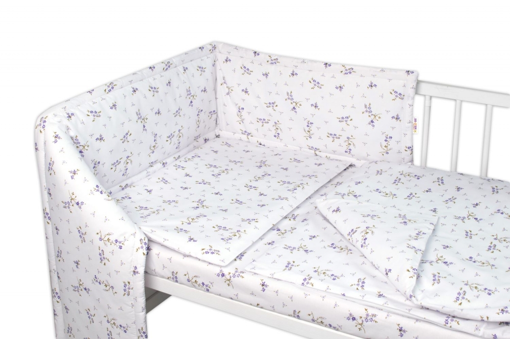Mantinel s povlečením, 3dílná sada Levandule, Baby Nellys, bílá/fialová, 135x100 cm