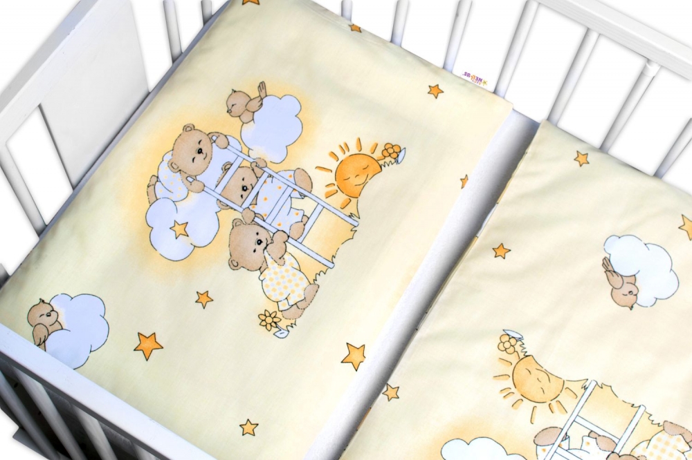 Mantinel s povlečením Premium, 3D sada, Medvídek na žebříku, žlutý, 120x90 cm