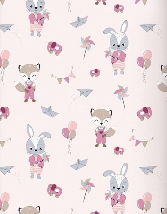 Baby Nellys 6-ti dílná výhod. sada s dárkem pro miminko, 120x90 Liška a zajíc, růžová