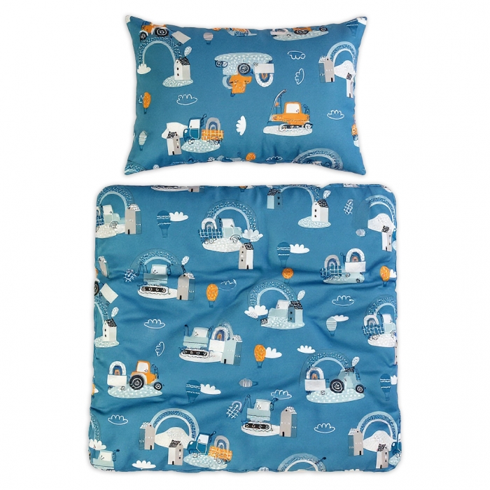Povlečení do postýlky, 2D sada - Malý stavitel, modrá