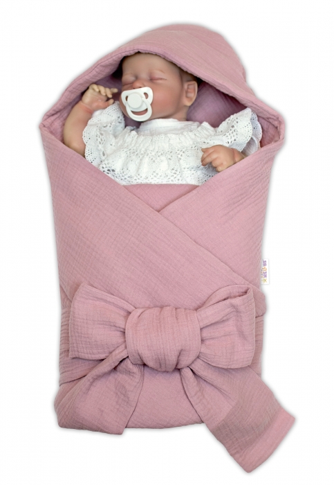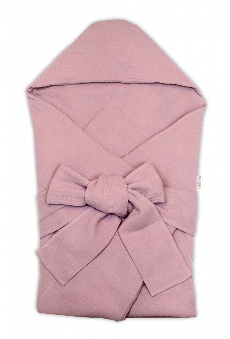 Luxusní mušelínová zavinovačka s kapucí na zavazování, pudrově růžová