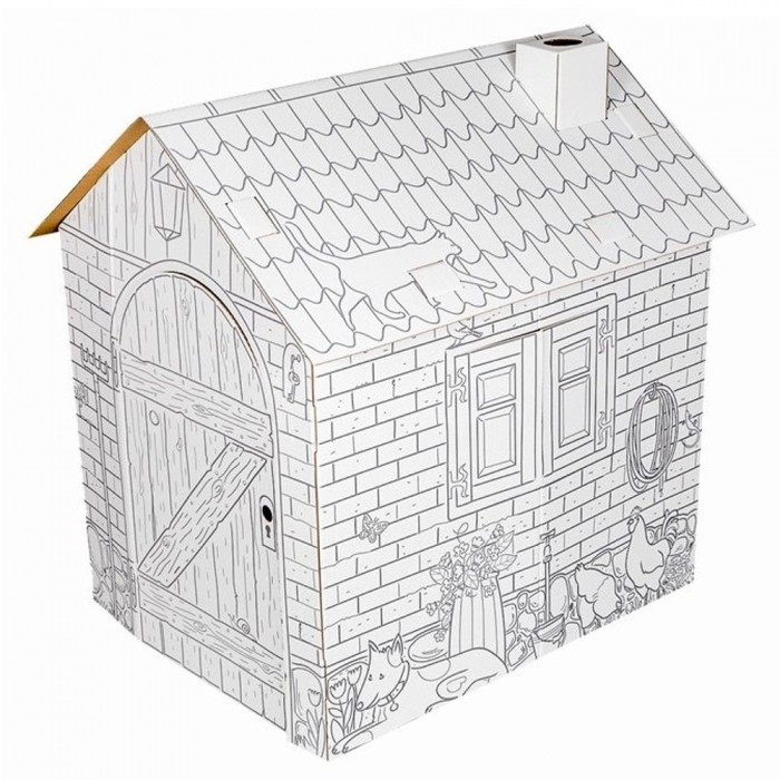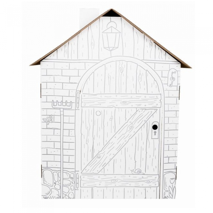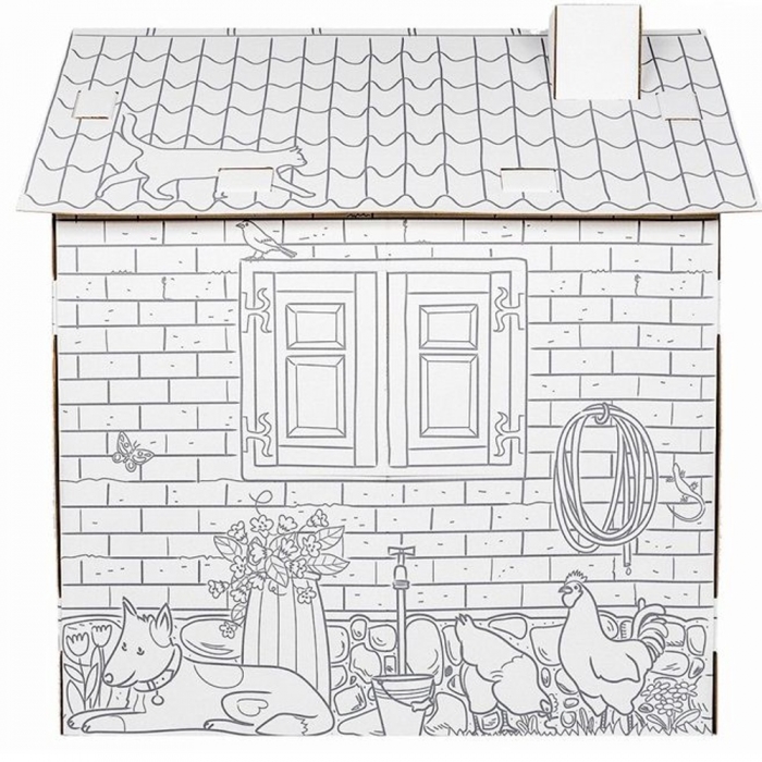 Domek má na sobě vzory, které lze vybarvit podle libosti.
