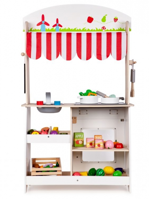Eco Toys Dřevěná kuchyňka s příslušenstvím, 101 x 60 x 27 cm - bílá