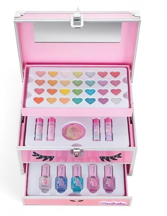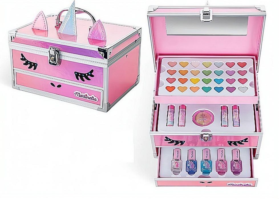 Sada dětského líčení v kufříku je ideální hračkou pro každou malou slečnu, která zde najde vše potřebné pro líčení. Hra s make-upem podpoří kreativitu a představivost, umožní rozvíjet smysly a formovat smysl pro estetiku a krásu. Kosmetika je zabalena v krásném kufříku. Ideální jako dárek, který potěší každou malou slečnu.
