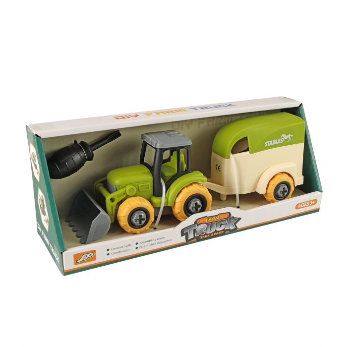 Šroubovací traktor s vlečkou, který se dá pomocí přiloženého dětského šroubováku snadno rozložit a zase složit. Rozvíjí technickou zručnost a kreativní myšlení.