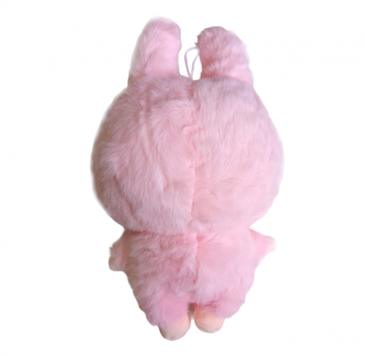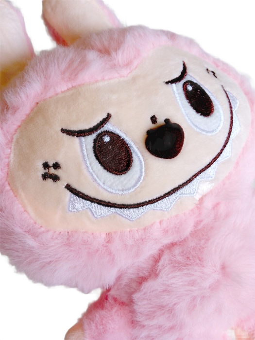 Plyšová hračka ve stylu Labubu Lychee Berry v růžovém provedení je sladká na pohled, ale nese si typický drzý výraz této populární postavičky.