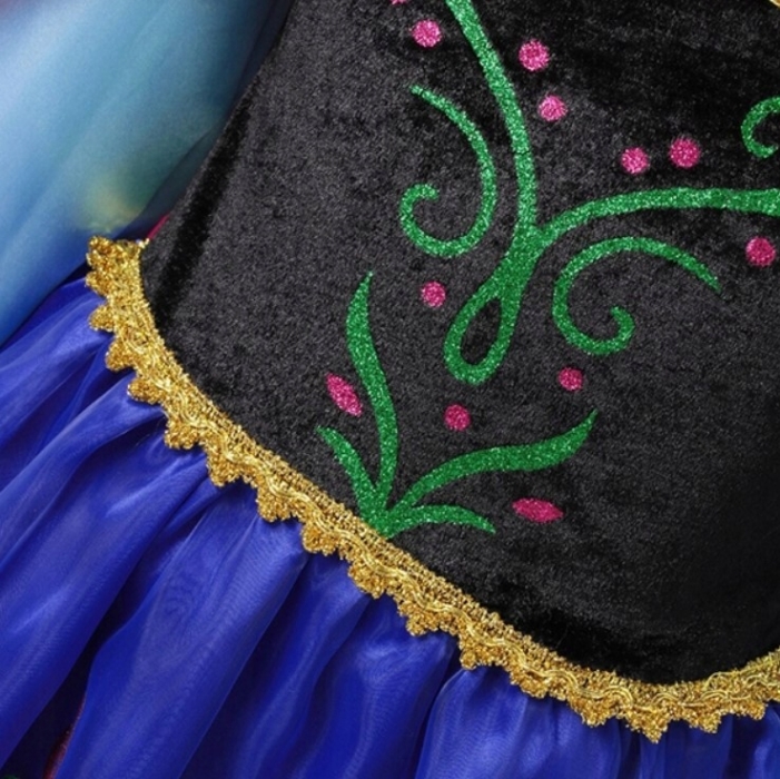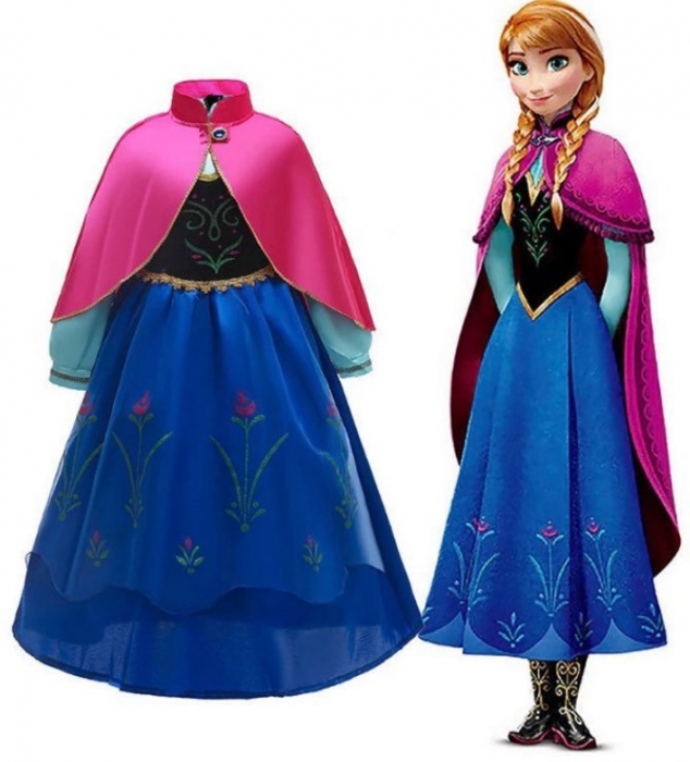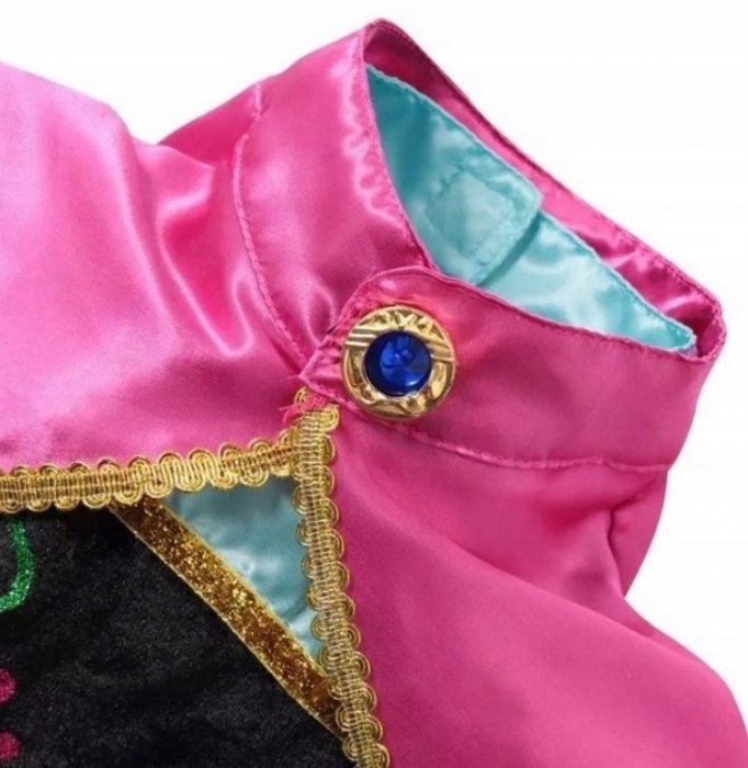 Dětský karnevalový kostým Anna Frozen, jedné z hlavních hrdinek Ledového království. Sukně kostýmu je v krásných pestrých barvách s vyšívanými motivy. Doplňkem šatů je jemná pelerína se zapínáním u krku. Modrá lesklá sukně je v pase nařasená do gumičky s ozdobným zlatým lemem. Dlouhé rukávy jsou hladké a lehké - dotvoří celkový vzhled a zaručí půvab každé malé princezny. Zažijte magii s kouzelným dětským karnevalovým kostýmem Anny z filmu Ledové království.