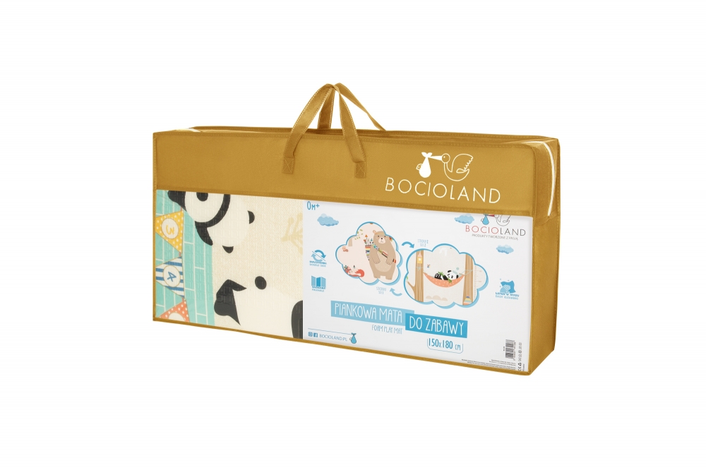 Vodotěsná - skládací podložka pro děti značky BOCIOLAND, neabsorbuje vlhkost a nepropouští ji. Díky tomu ochrání podlahu před náhodným politím např. nápojem nebo mlékem. Snadno se čistí - stačí otřít mokrým hadříkem nebo vodou s čisticím prostředkem na hračky.