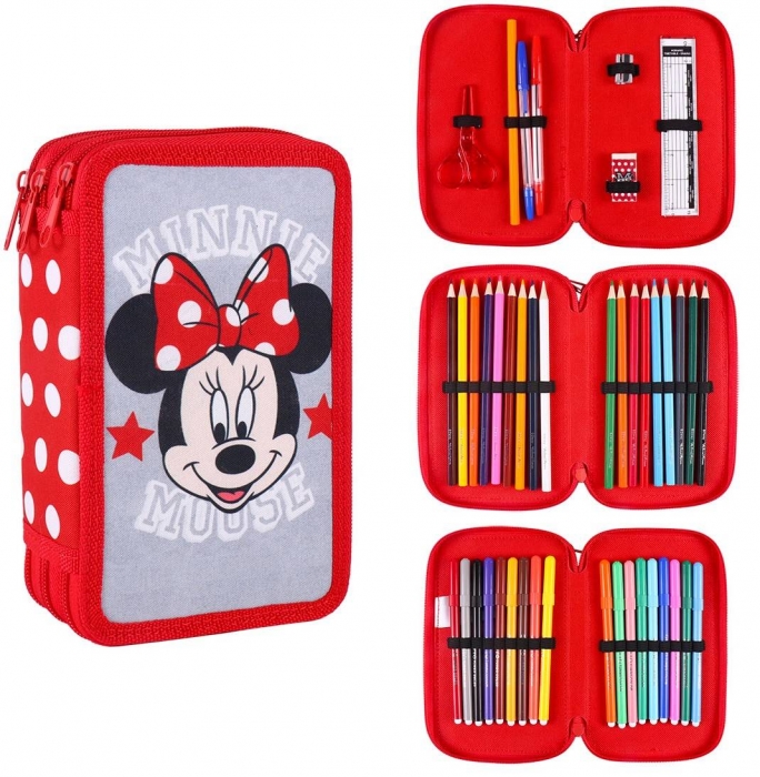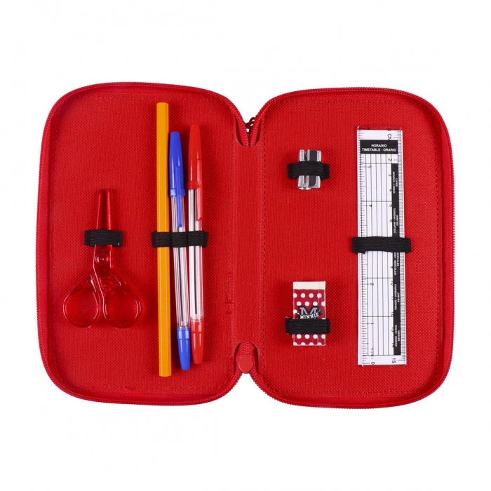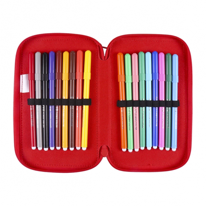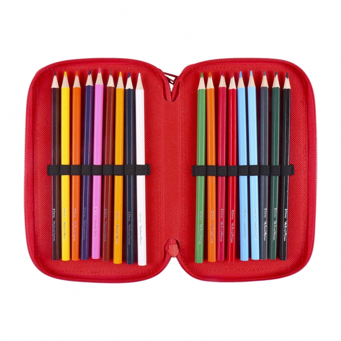 Tříkomorový rozkládací školní penál od španělského výrobce. Penál má 3 přihrádky uzavírané na zip. Ideální pro všechny, kteří mají rádi pořádek ve svém penálu. Každý kus vybavení zde najde své místo. V jedné přihrádce jsou fixy, ve druhé pastelky a ve třetí potřebné školní pomůcky. Veškeré vybavení s prvky označenými logem.