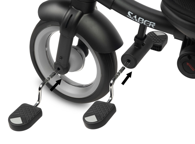 Tříkolka SABER poskytuje maximální pohodlí nejen dítěti, ale i rodičům díky přizpůsobitelné rukojeti a nezávislým nožním brzdám.