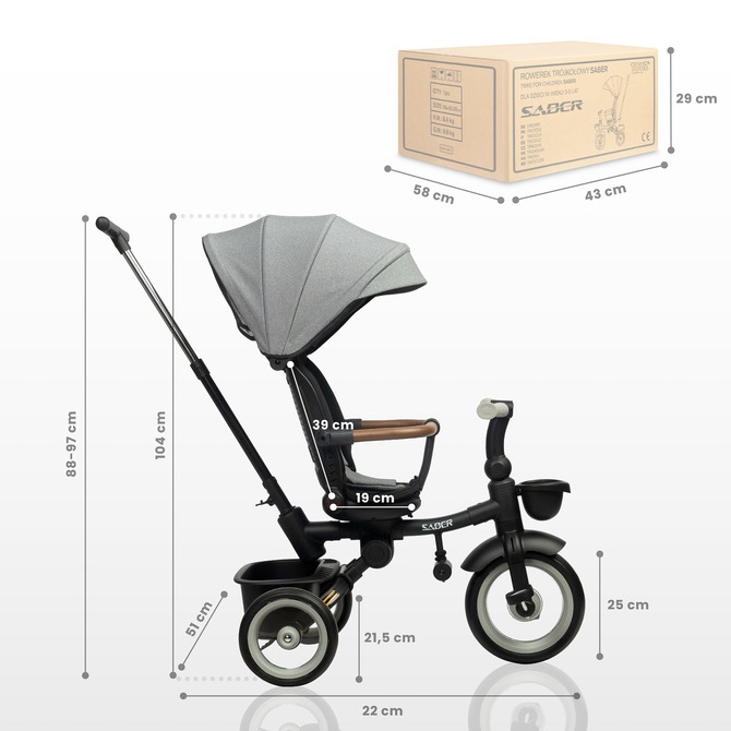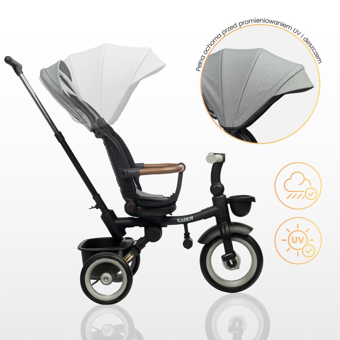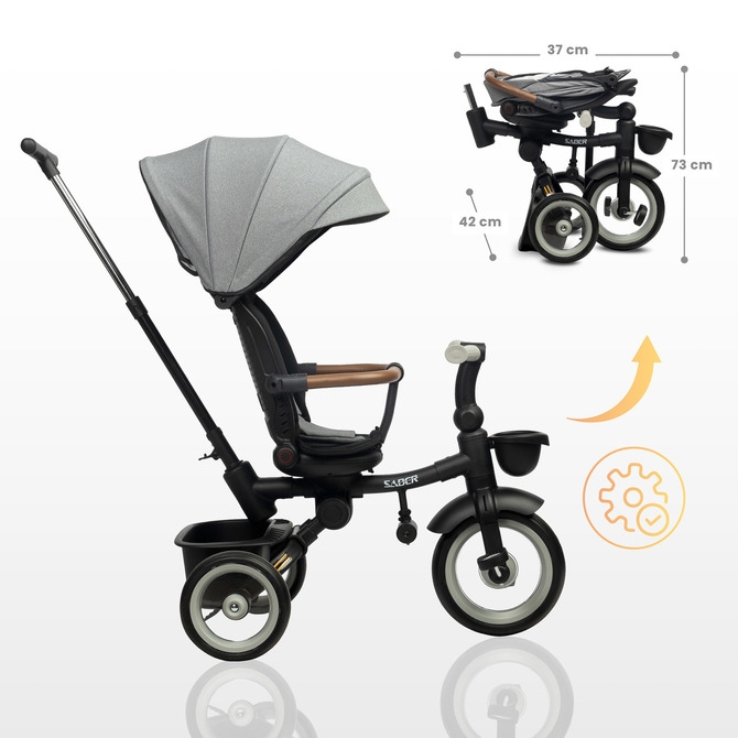 Objevte kvalitu a funkčnost dětské tříkolky SABER, která se stane skvělým společníkem na všech vašich rodinných výletech!