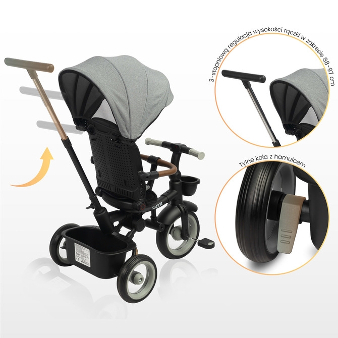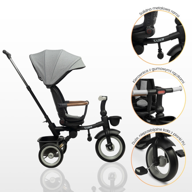 Multifunkční dětská tříkolka SABER: kvalita, bezpečnost a pohodlí.